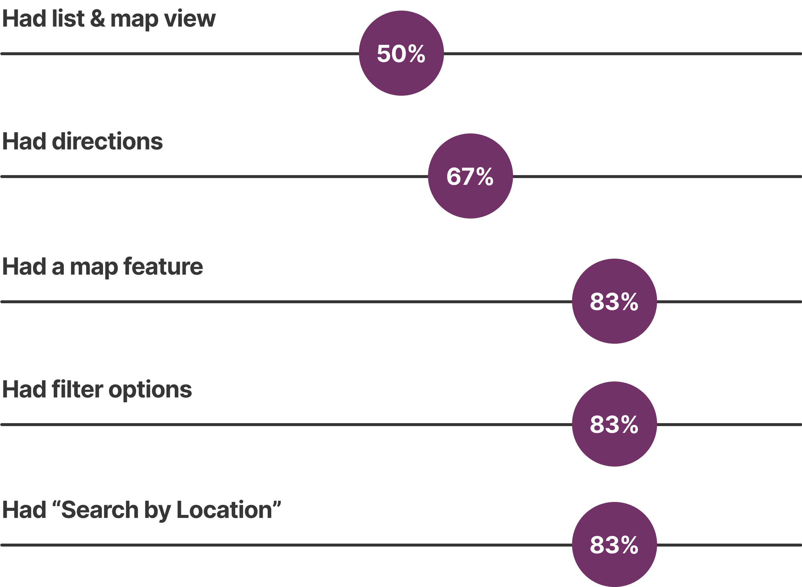 • Users were able to quickly switch between map + list view when navigating